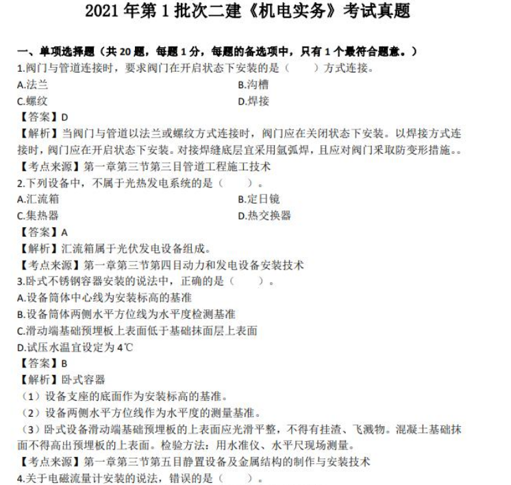二建考试机电历年真题完整版(更新到2021年)及答案解析电子版百度网盘云盘下载