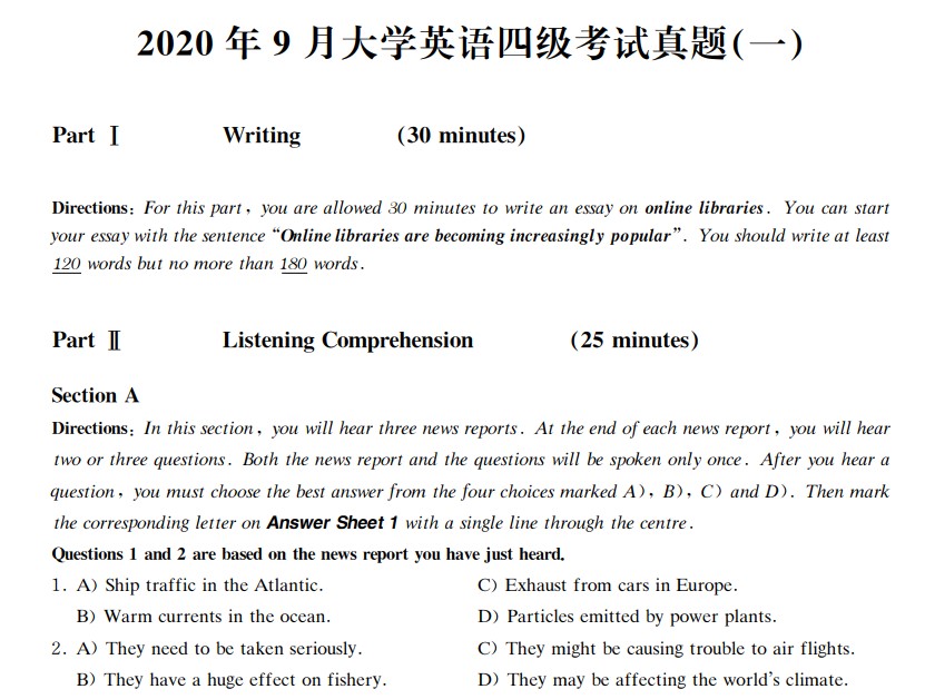 1990-2022年12月大学四级历年真题及答案听力链接:https://pan.baidu.com/s/1-jeV-QAOoRWFCwcnzKtPSw 提取码:3333