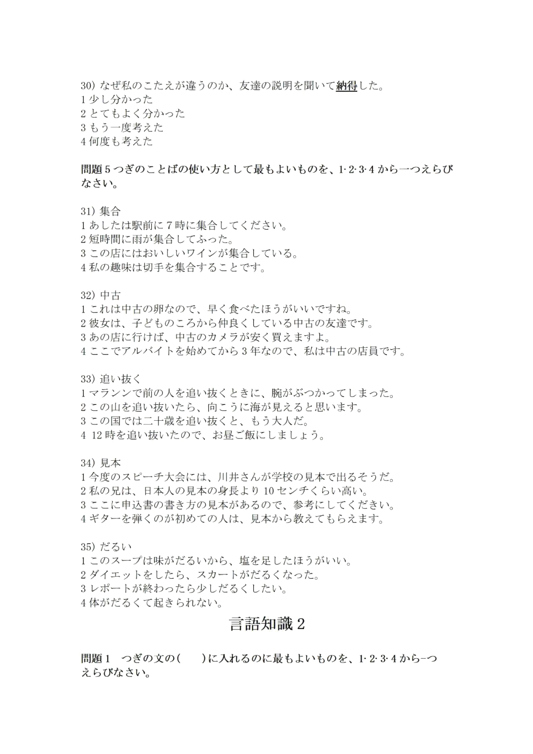 21新JLPT日语N2真题及答案解电子版+答案解析完整版