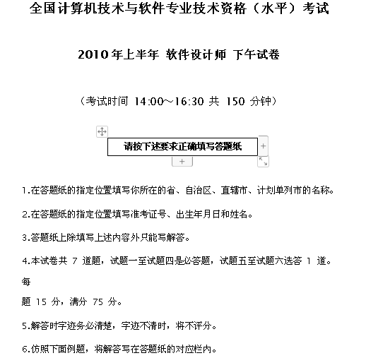 2010年上半年软件设计师考试下午真题及答案