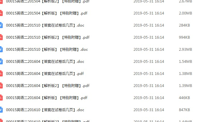 00015英语二自考历年真题电子版word及复习资料(2004-2019)