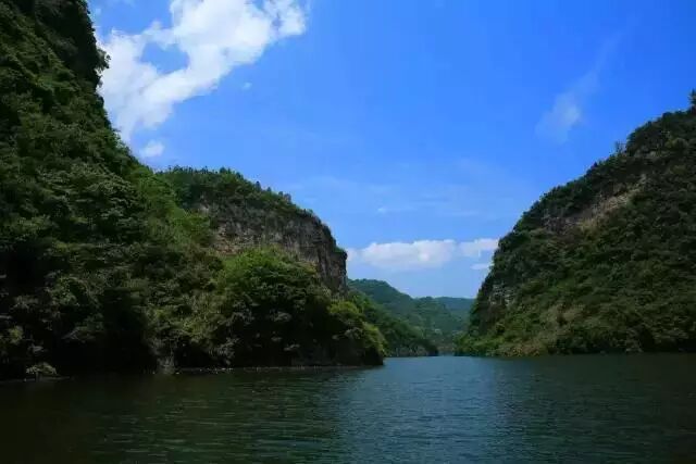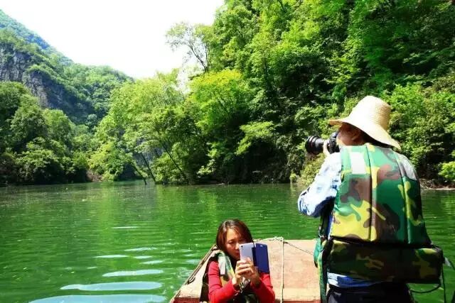 进入峡内,仿佛进入一个六维空间,这使我想起参观上海世博会沙特馆看到的五维电影。如果以四周青山为四维,蓝天和绿水各为一维,就是六维,置身六维之内,妙处非身临其境不可言表。