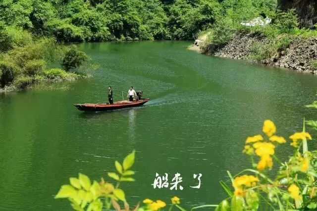 从凤凰湖入口登船,几分钟就进入天宝乡境内。放眼望去,湖水清澈且因四周青山苍翠而映成绿色。