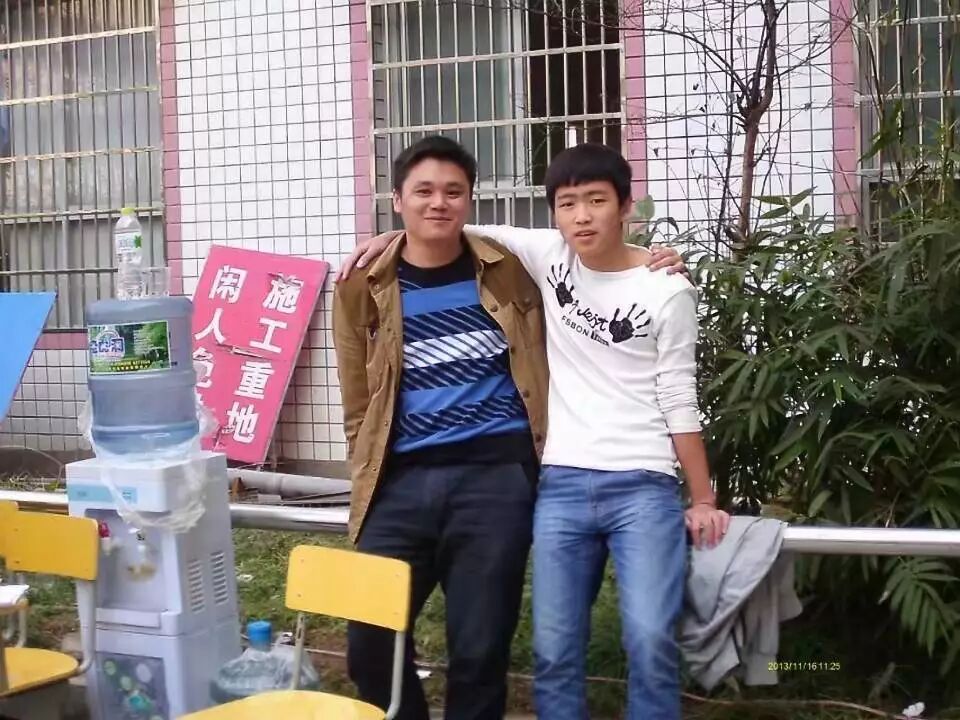 教师:苏宽(中)十堰市第十三中学毕业生:樊自雄(左)陈刚(右)学生寄语:2009年,我们踏入学校,开始了我们的新征程苏老师也是刚刚参加工作,我们都对未来都充满了期待2019年,母校搬入了新校区,我们再回来看一看学校,和老师拍了一张十年前一样的照片,我们褪去青涩,您也走向了成熟。