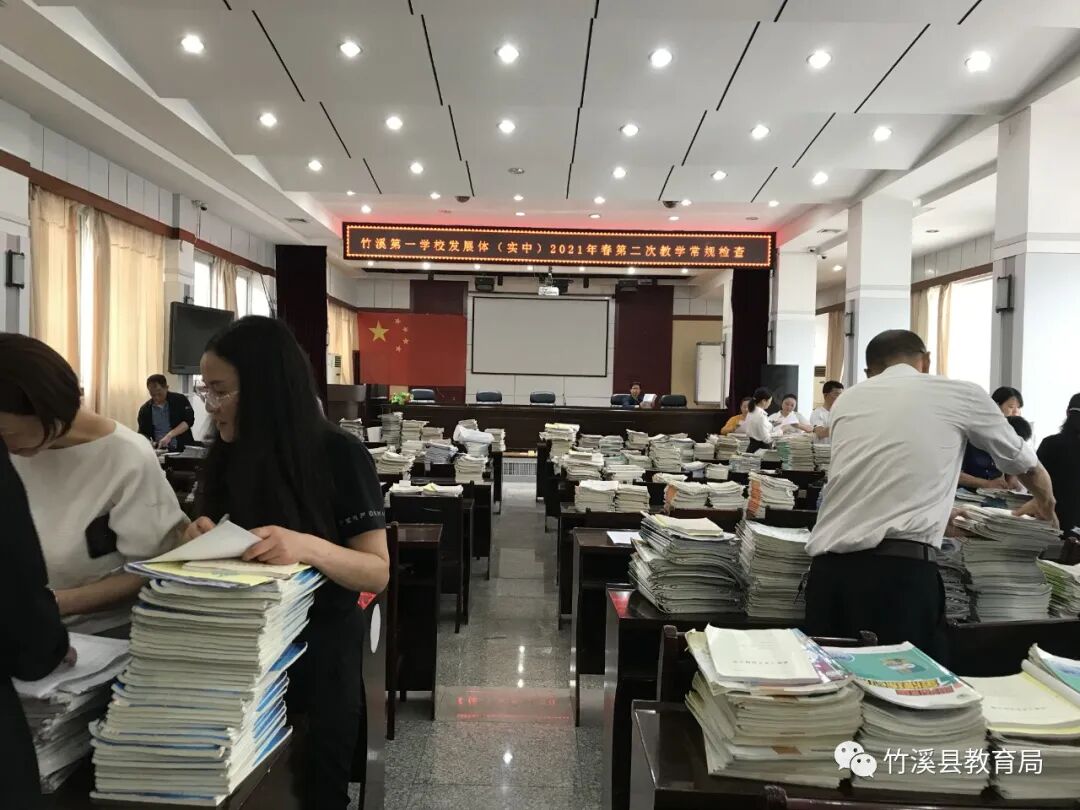 实验中学5月13日,竹溪县学校第一发展共同体对实验中学2020----2021学年度年下学期第二次教学常规大检查在报告厅进行,第一发展共同体班子成员和实验中学校委会成员、学科组长、备课组长分成语文、数学、英语、理综、文综等大组开展大检查