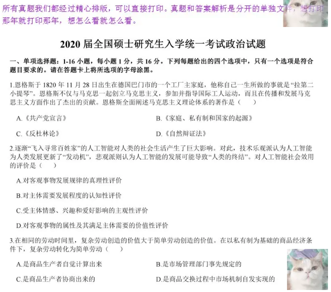 2021年考研思想政治马原思修毛中特历年真题及解析电子版PDF word