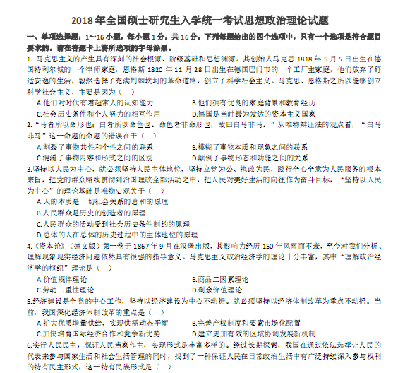 2018年考研政治真题试卷及答案解析